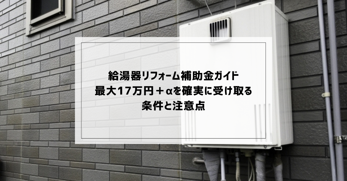 2026年は高効率給湯器の導入を後押しする補助制度が充実しており、条件を満たせば最大17万円の補助金を受けられる可能性があります。